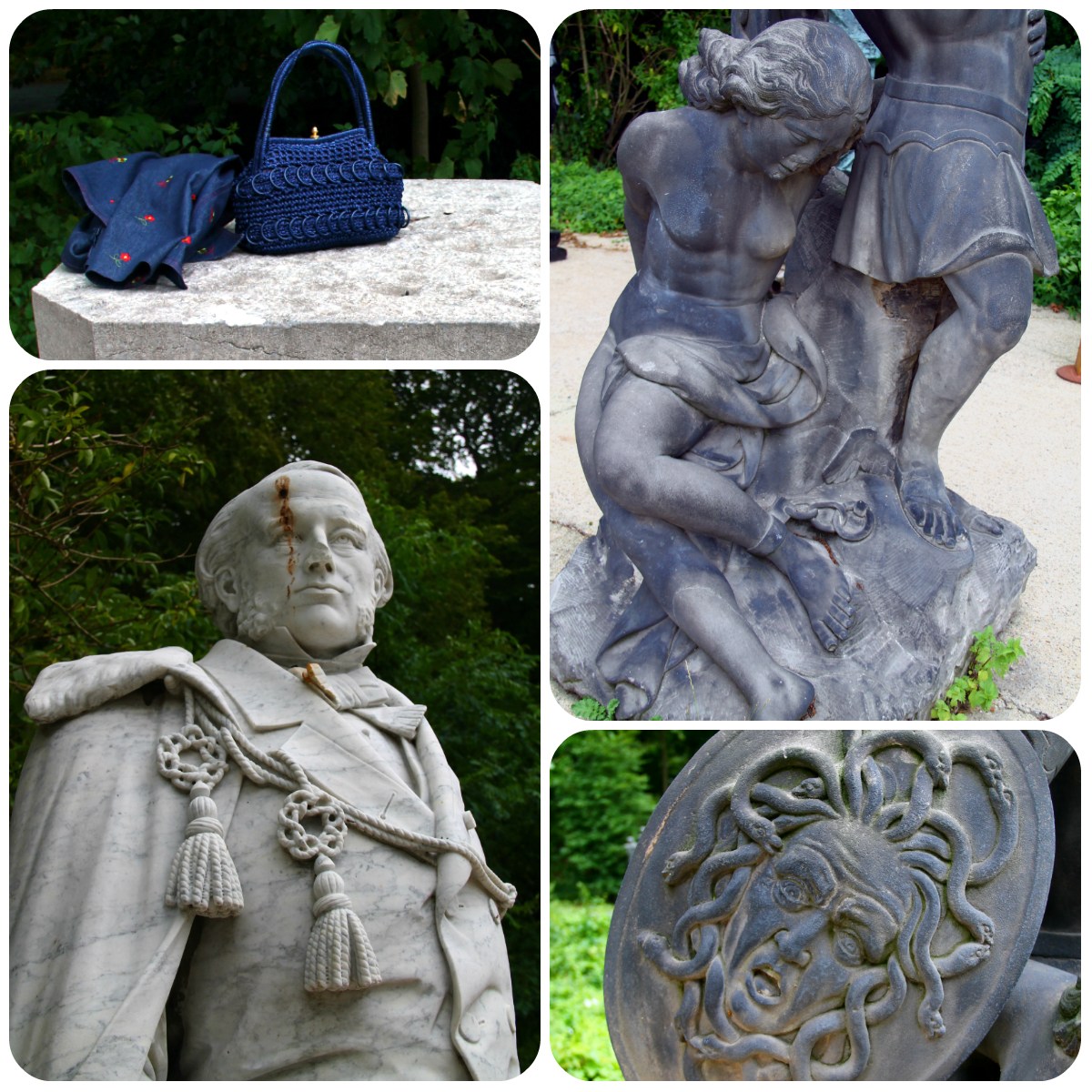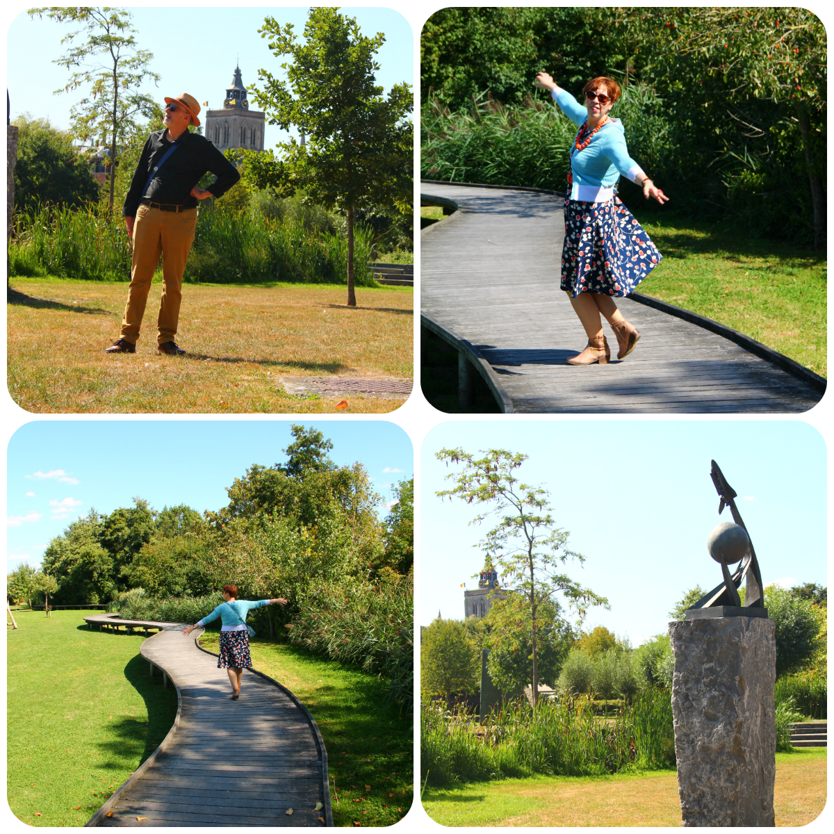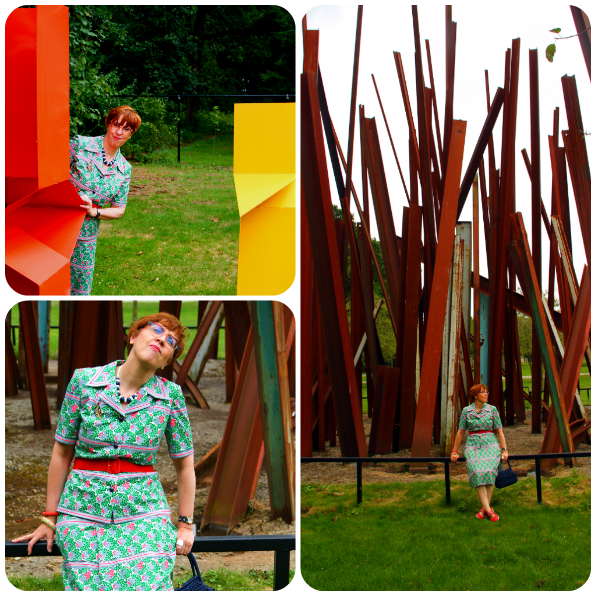 Let's have a look at the symphony of blue, red and white I was wearing that day. The skirt is vintage and was part of a birthday haul at Think Twice in September 2020. The spotty blouse is from the former Belgian Wow To Go label and was charity shopped almost exactly two years later. My necklace, another one which is making regular appearances here, was a charity shop find as well, while the elastic belt with its Celtic knot buckle was picked up from the Green Ice outlet shop near my office.