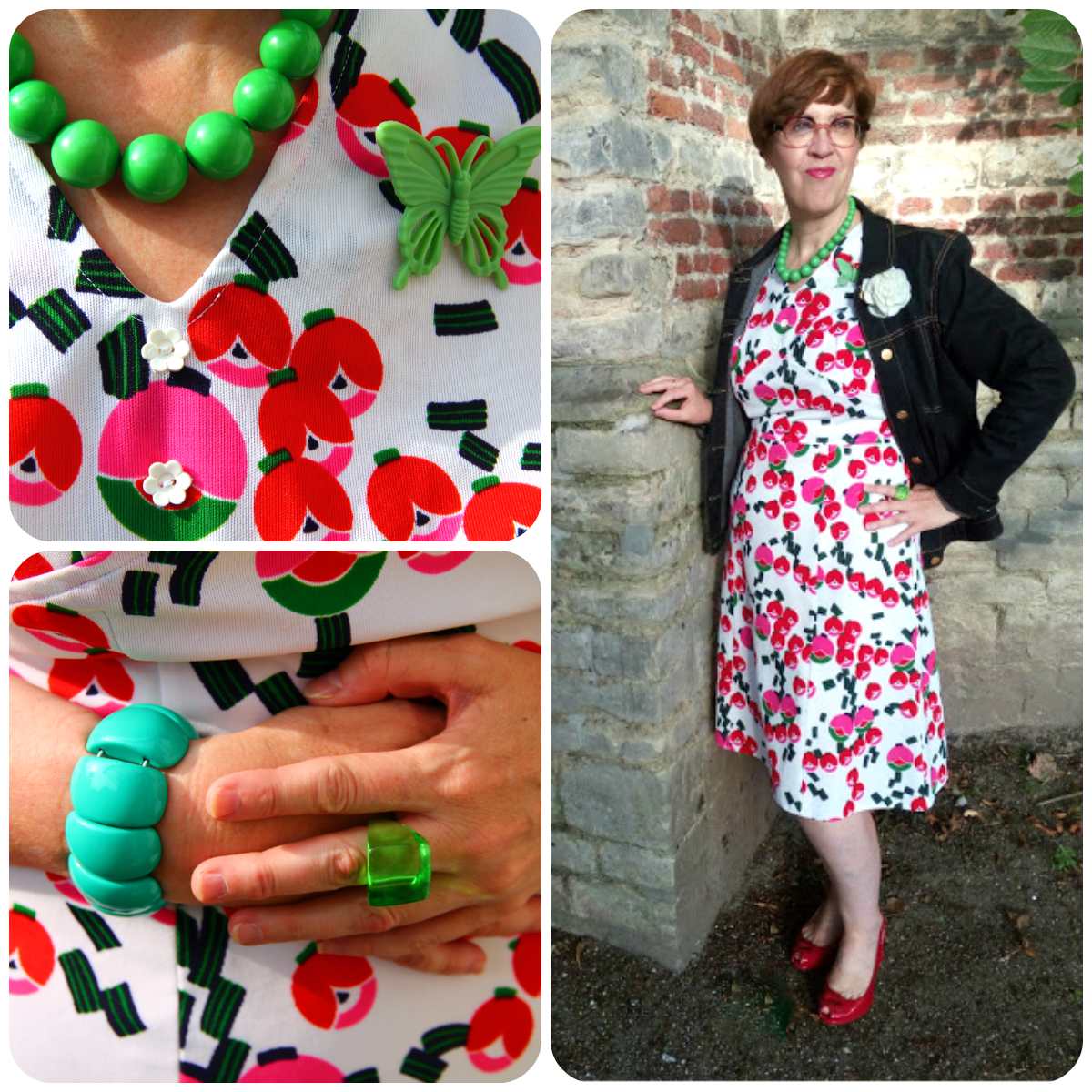 The Diolen Delight I plucked from my wardrobe was a pre-blog Think Twice bargain and, with its joyous multi-coloured dots, was the perfect mood booster on this gloomiest of days! The green Dralon short-sleeved cardigan I wore on top came from Think Twice as well, snapped up for € 4 in November 2018.